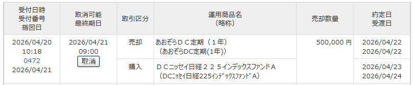 ただ近々6万は超えるだろうから今日も50万定期から日経へスイッチング。