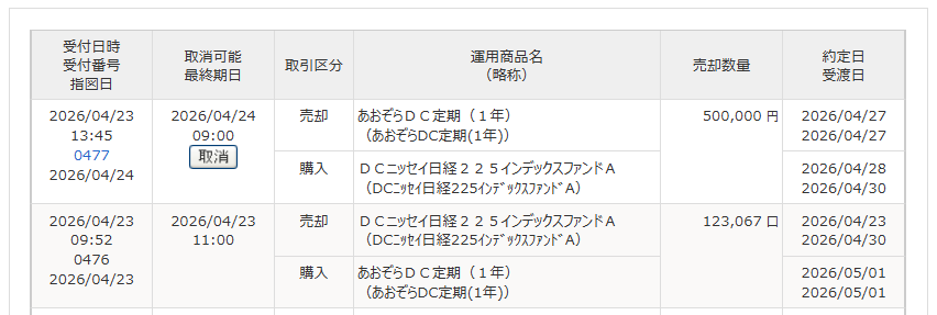 そして、入れ替えるように定期から日経へ50万円のスイッチング指示も出した。